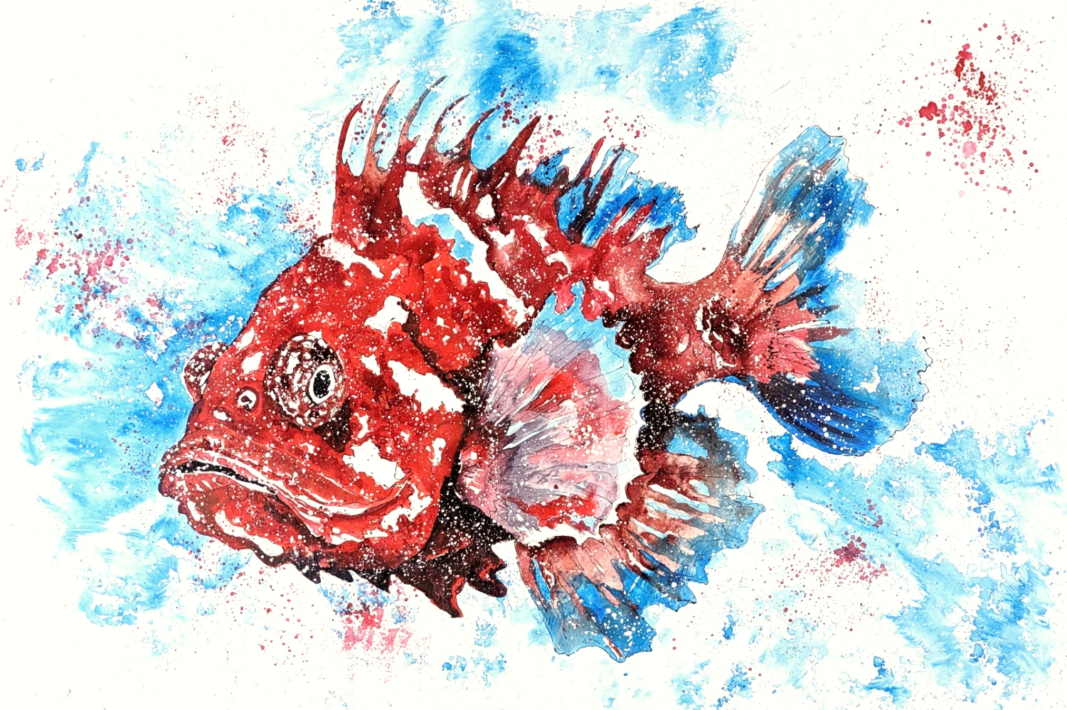 Esta obra captura mi fascinación por el cabracho, un pez que simboliza resistencia y fortaleza silenciosa. Pintada sobre lienzo, he usado tinta y acrílico de una manera muy gestual, dejando que el trazo y la mancha cuenten la historia. Aquí el cabracho no se pinta literalmente; busco reflejar su energía y determinación en su desafiante entorno. Los colores intensos – rojos, azules y blancos – crean tensión y movimiento, mientras que el fondo abierto deja que la pieza respire y tenga profundidad. No hay retoques; cada pincelada es sincera, mostrando la autenticidad del proceso. En gran formato, esta obra está hecha para llenar el espacio, invitándote a verla desde lejos y de cerca, donde su textura y detalles te permitirán descubrir su esencia única.